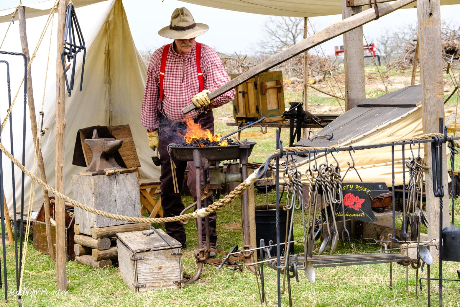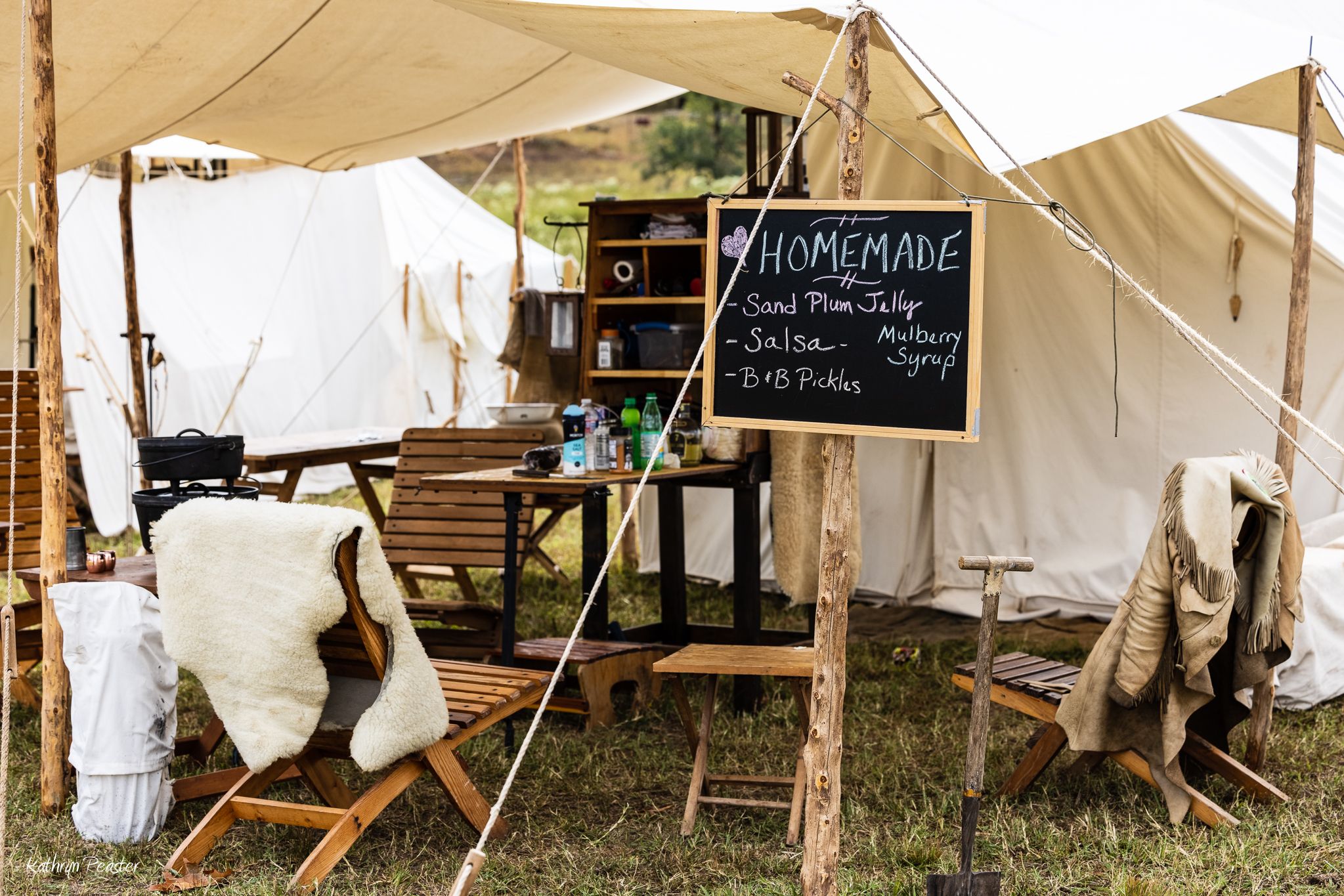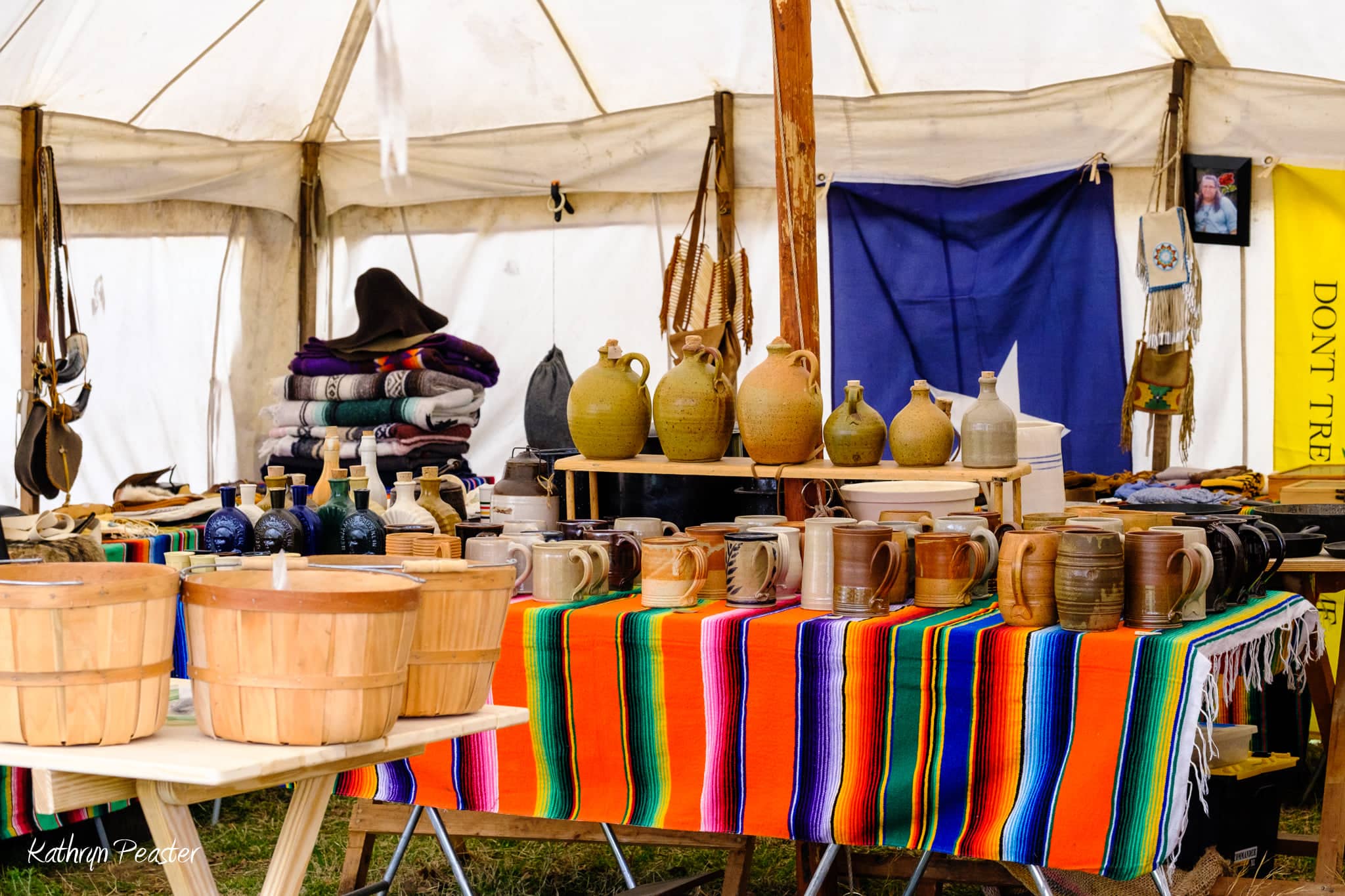 The Traders Encampment is open to the public, and guests are encouraged to park and walk through the camp. There is no additional admission required; regular admission at the gate includes the Spring Traders Camp. Many of the campers will set up their tents or tipis and have period crafts for the public to view and purchase.